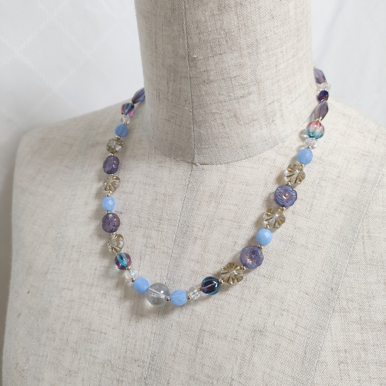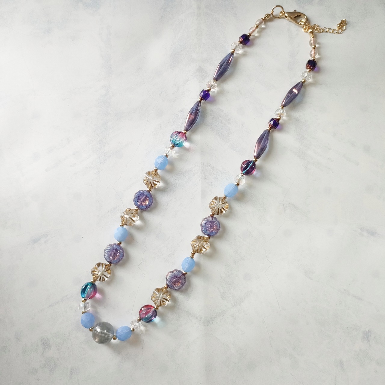 こちらはたくさんの種類のチェコビーズを使ったネックレスになります。