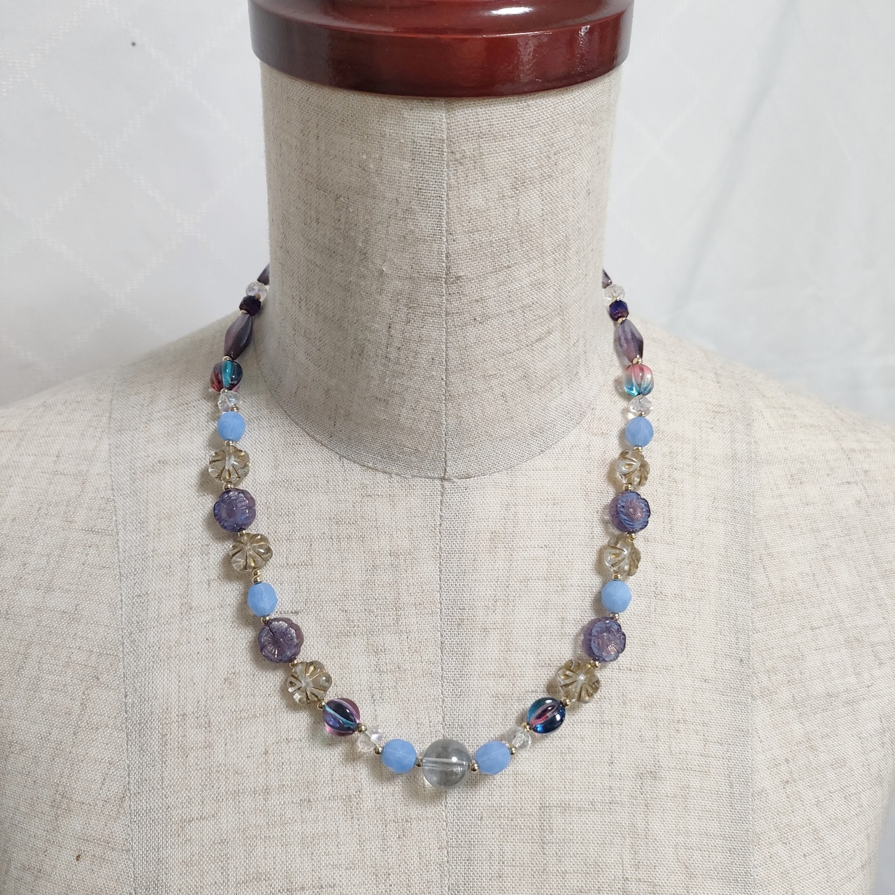 【ビーズステッチ】一点物 青 (チェコビーズのネックレス)