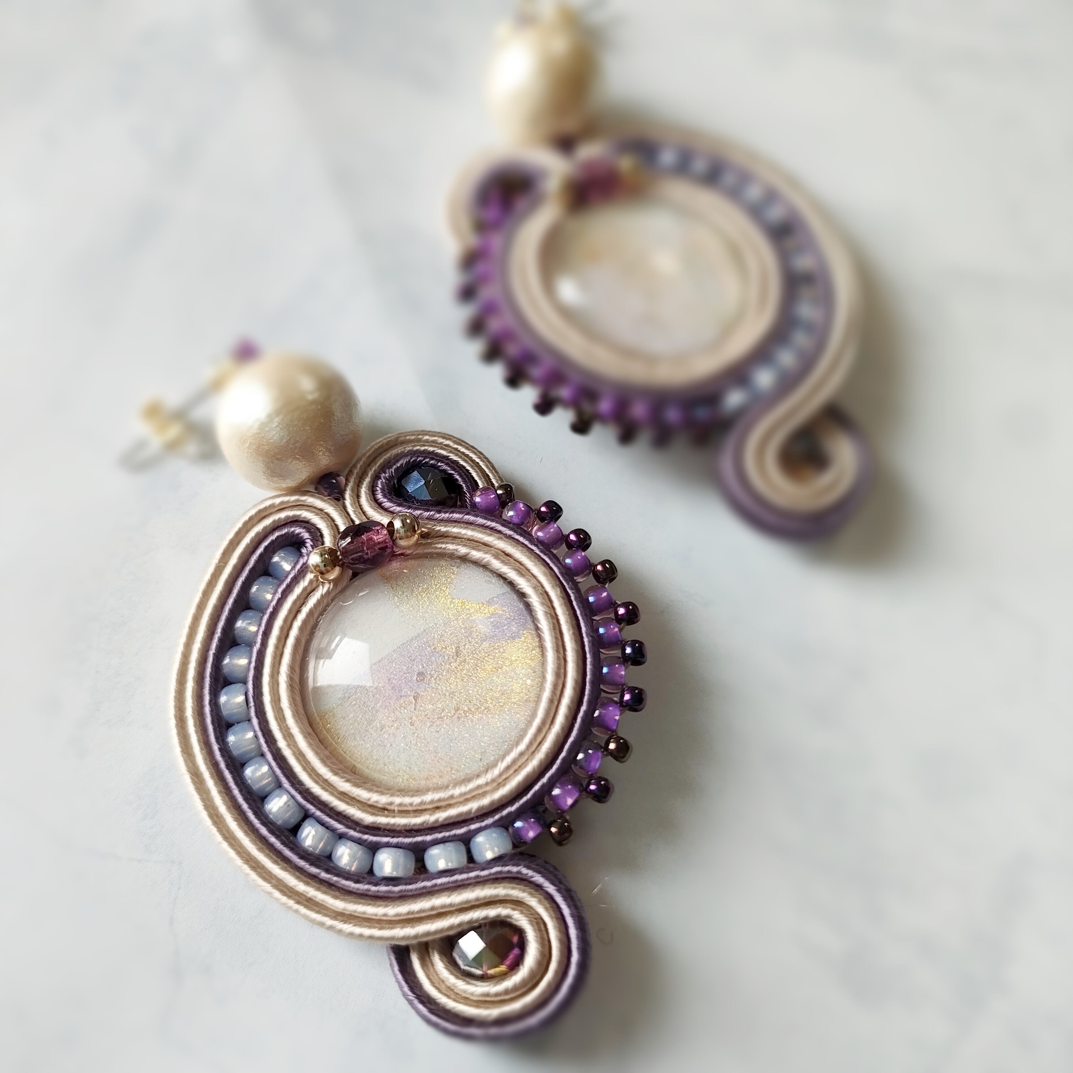 ソウタシエコードを流れるようにあしらい、中央には柔らかな光を映すアートカボションをセッティング。