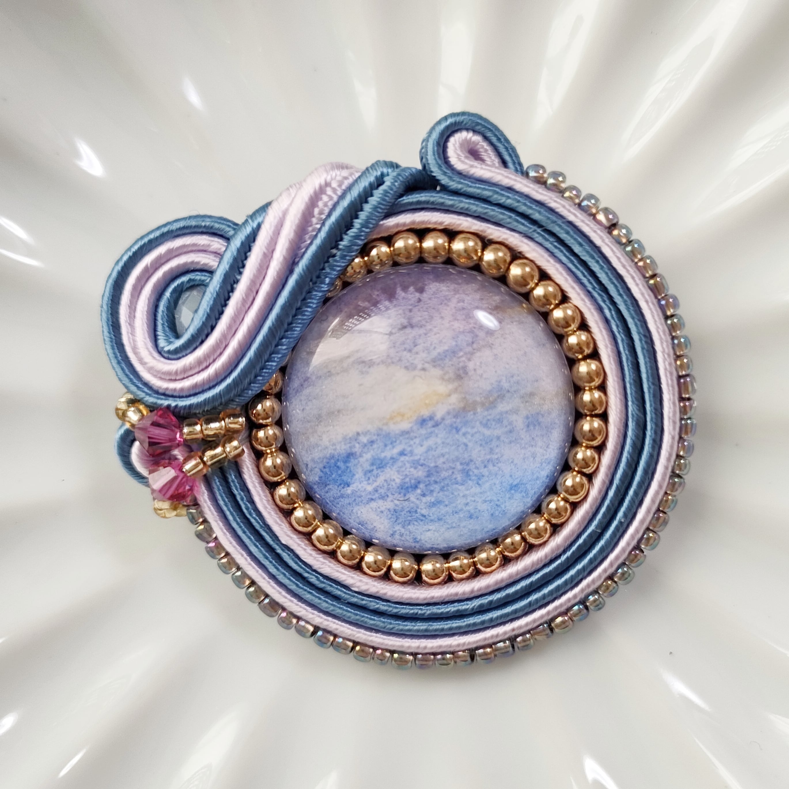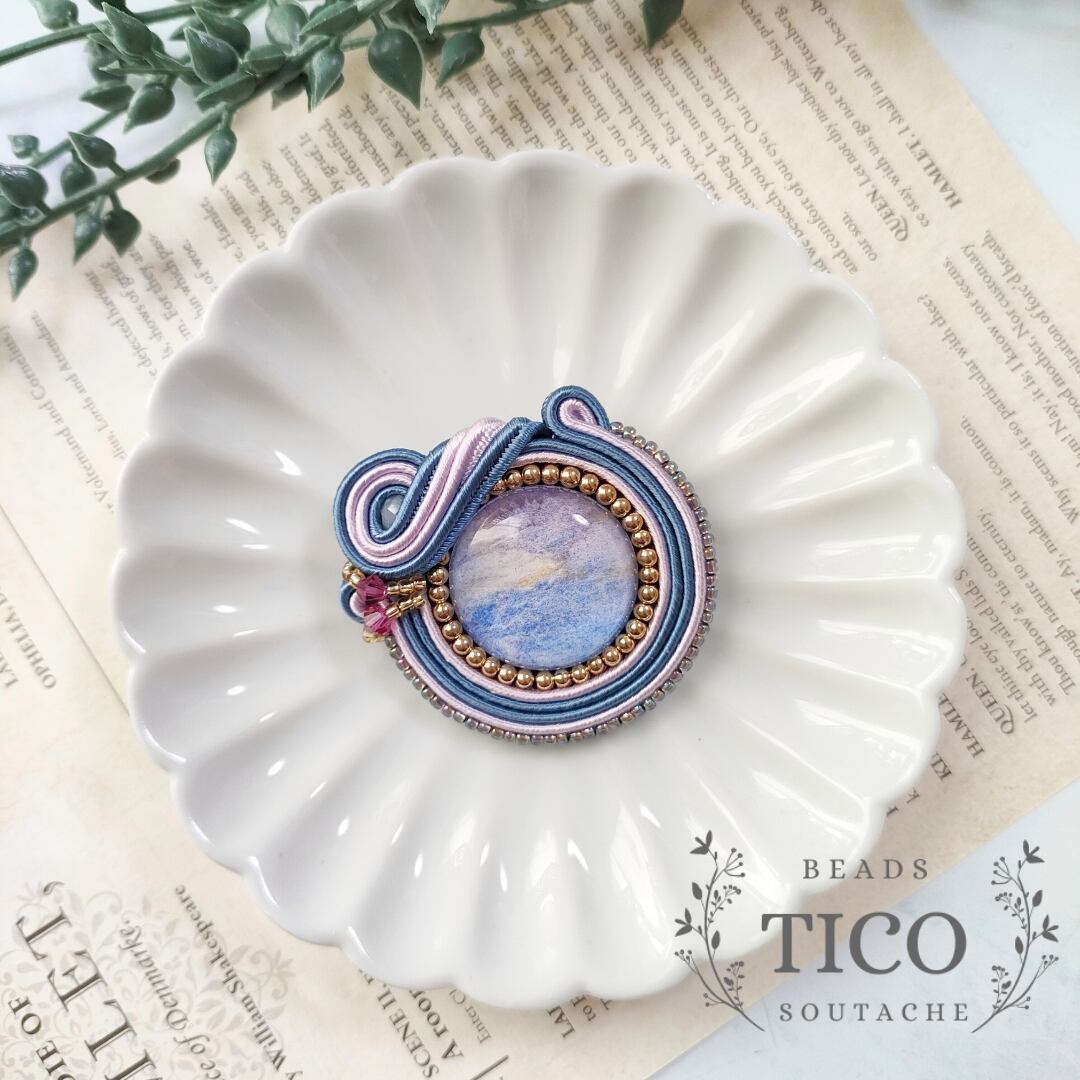 曖昧な世界の様なカラーが美しいブローチアクセサリーになっております。