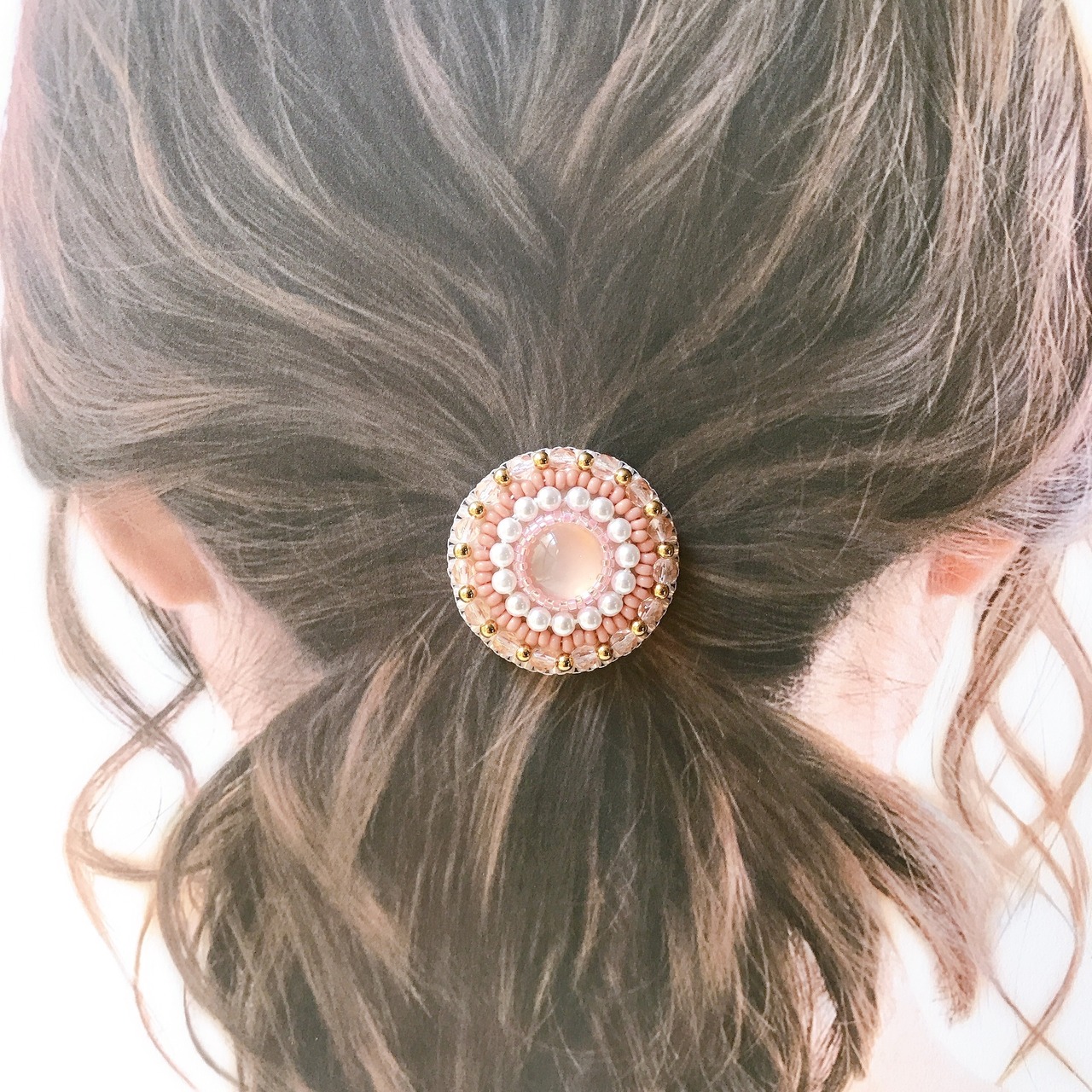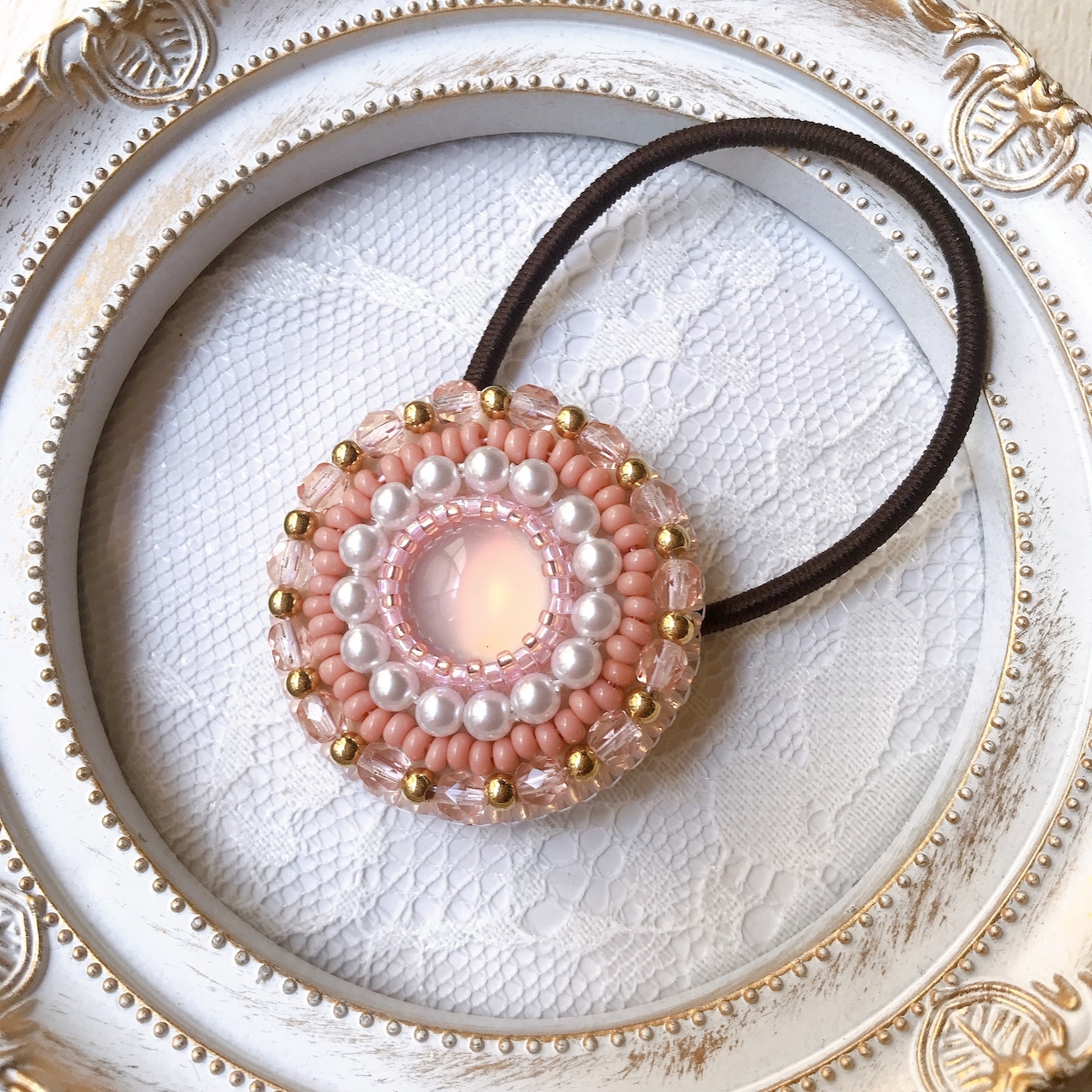 【ビーズ刺繍】大人可愛いサークルヘアゴム ピンク